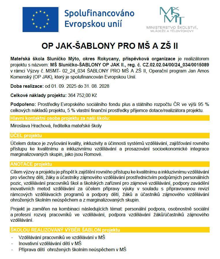 Rubrika: Projekty, Upraveno: 20.3.2026, autor: MŠ Mýto